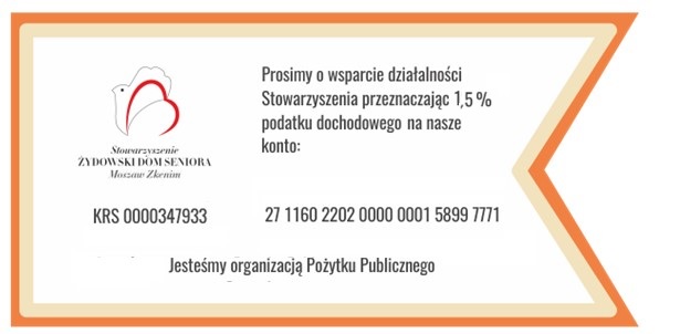 Stowarzyszenie Żydowski Dom Seniora gorąco dziękuje wszystkim ofiarodawcom za przekazanie na cele statutowe naszej organizacji darowizn oraz 1,5% podatku dochodowego.